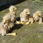 Bijna ieder grote roofvogel die je ziet, met name in het veld of op een paal langs de snelweg, is een Europese buizerd in verschillende kleurstelling van licht tot heel donker. Onze Nelson is een grote tarsel die in kweek in Nederland is geboren. |