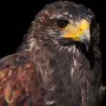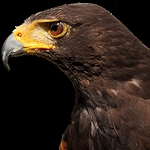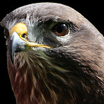 De engelse naam is Harris Hawk. Het is een zeer sociale vogel die als enige roofvogel in groepsverband kan jagen. Onze Pascha is in kweek geboren in België. |