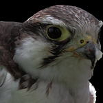 De luggervalk is familie van de bekende sakervalk, alleen is de luggervalk een slechte jager. Hun prooi bestaat voornamelijk uit jonge en/of zwakke vogels, en deze doden ze eerder per toeval dan door volharding. Onze Storm is een lieve tarsel en is geboren in kweek in Nederland. |
