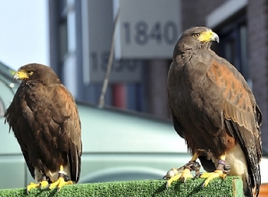 Om deze overlast op een diervriendelijke en milieuverantwoorde manier te bestrijden werken wij met geluid (installatie) in combinatie met de aanwezigheid van een roofvogel (visueel). Deze combinatie is voor de "wilde" vogels reden genoeg om hun heil elders te zoeken.